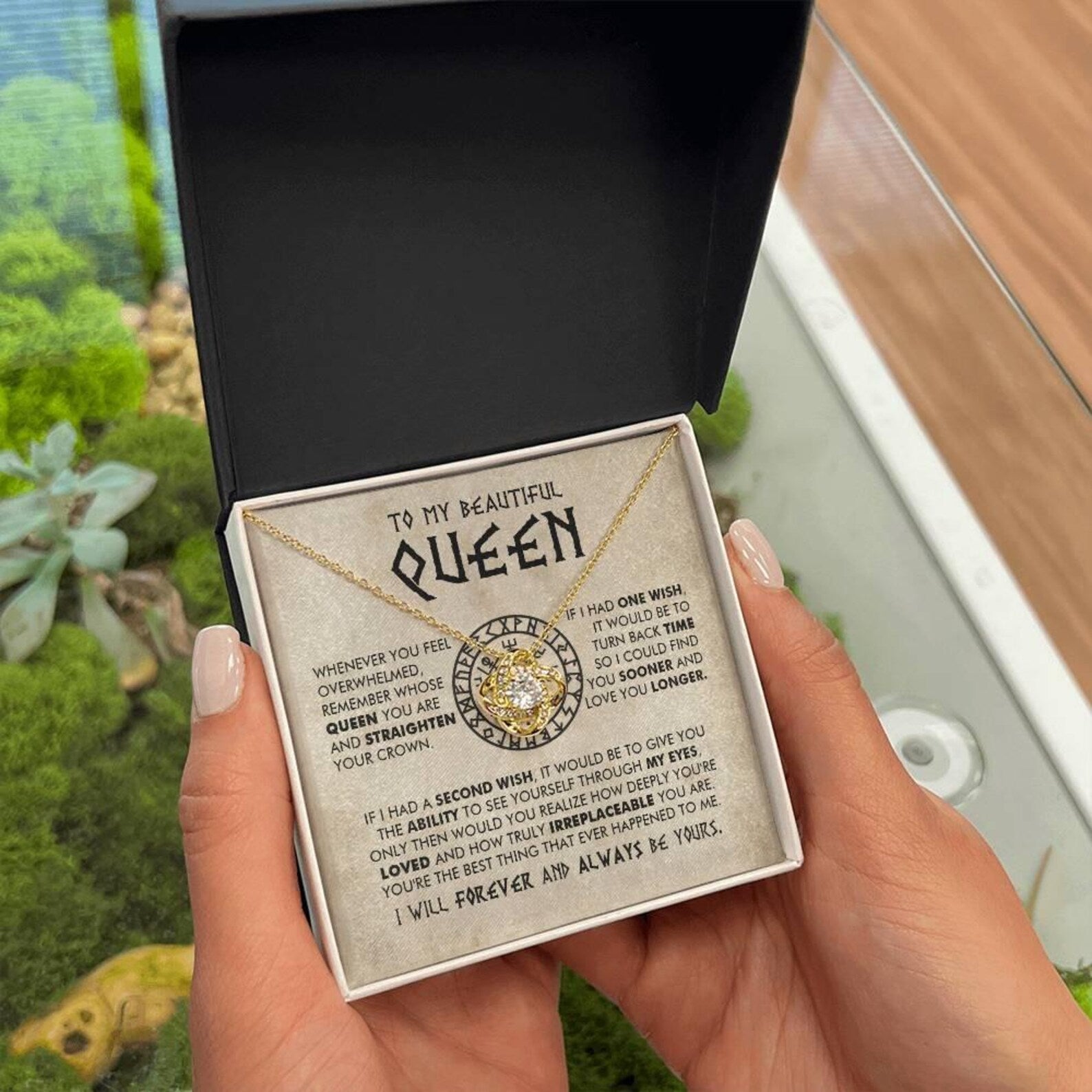 🎁 Your piece is lovingly packaged in a complimentary soft touch box for easy gifting. Elevate your presentation by upgrading to the mahogany-style luxury box, which features a brilliant LED spotlight.