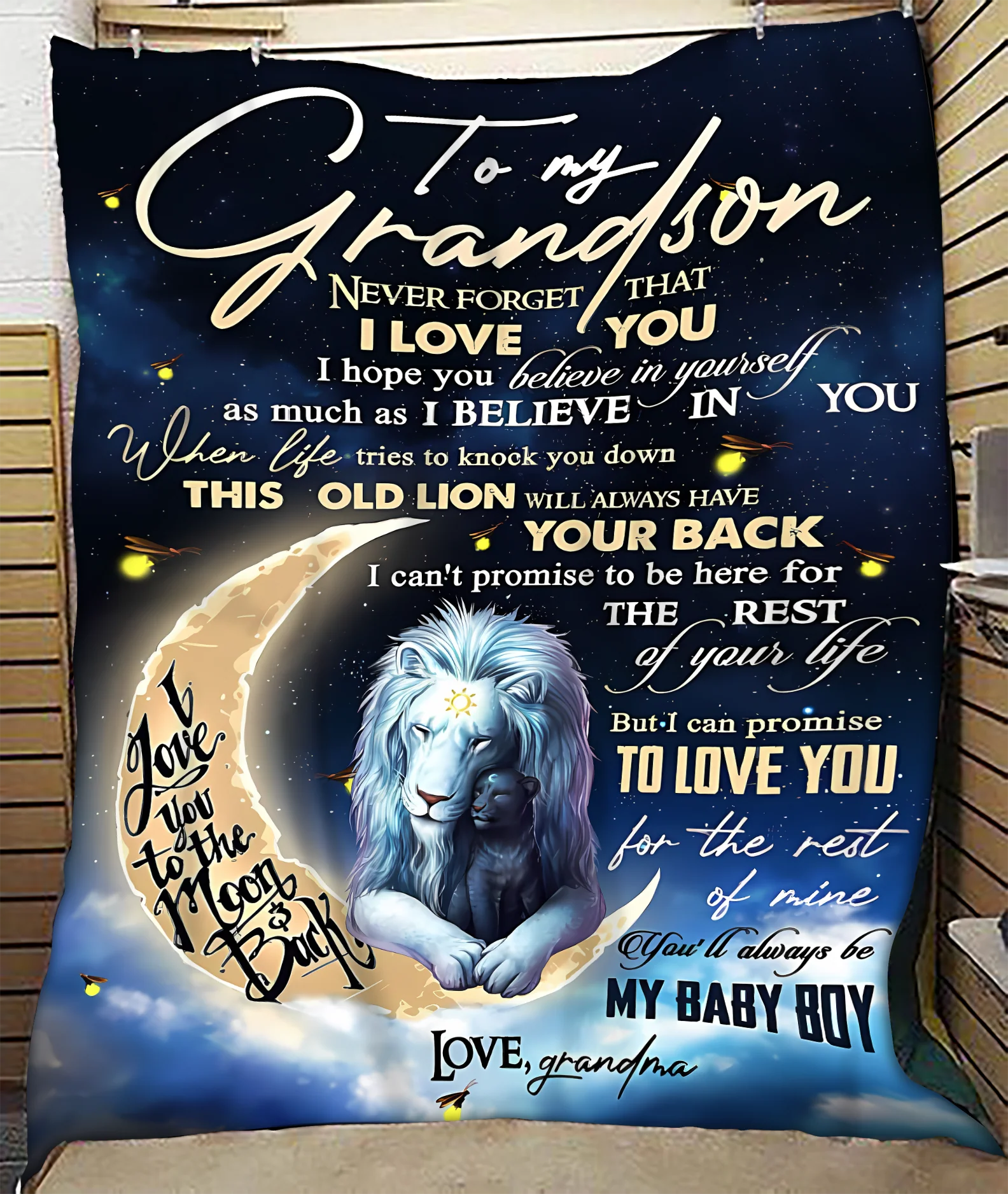 BLANKET FOR GRANDSON – COMFORT & WARMTH GIFT FROM GRANDMA Sherpa Fleece Quilt Blanket NTTD00 (SKU-CHAU-B19)